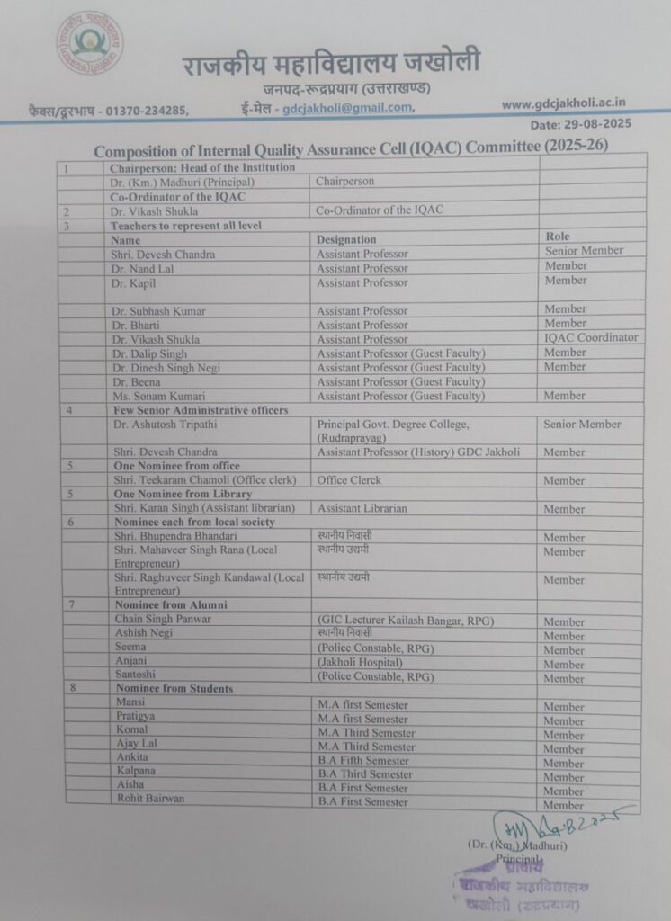 Government Degree College, Jakholi is committed toward the all-round development of the students. The college conducts a good number of co-curricular and extra-curricular activities for the holistic development of students. The college organizes study tours, sports events, debate, seminars, and many learner-oriented activities to bring excel from the learners. The infrastructure and human-resources are continuously upgraded to create student centric ambience for their proficient development. The college considers the inputs from its stakeholders especially from students very important to bring relevant and fruitful changes in the college. Their feedback considerably showcases the actual quality of teaching-learning process enabling identification of the strengths of teaching as well as the possible improvements.